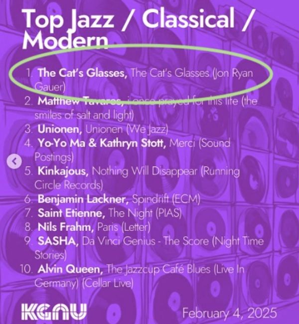 KGNU (99.1 FM Denver / 88.5 FM Boulder / 98.7 FM Fort Collins) has featured The Cat's Glasses on their Top Jazz/Classical/Modern charts!